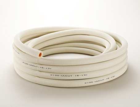 高耐候性/高耐熱性 保温材を使用した被覆付巻フレキです。屋内へ引き込んだあとも、結露防止対策になります。