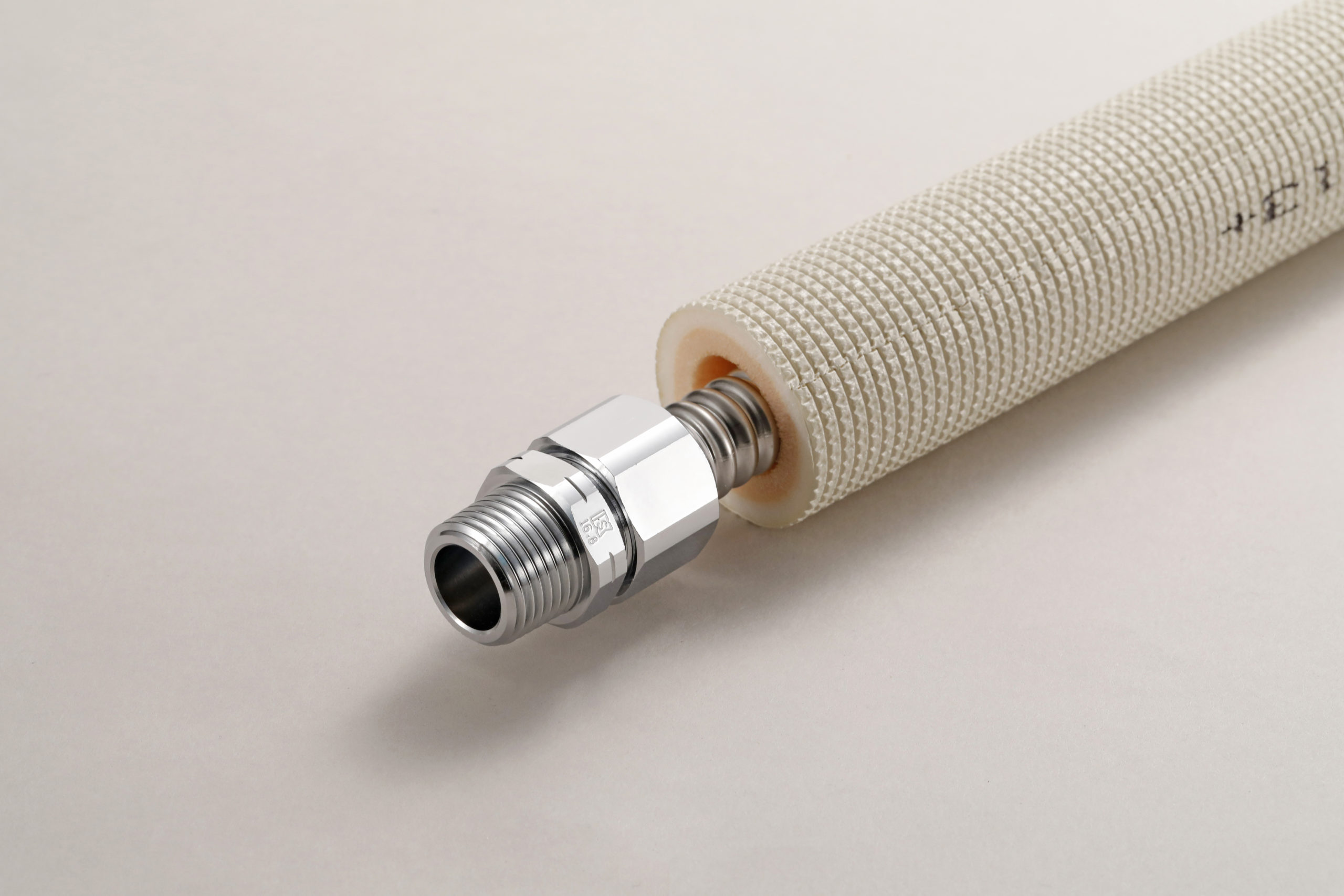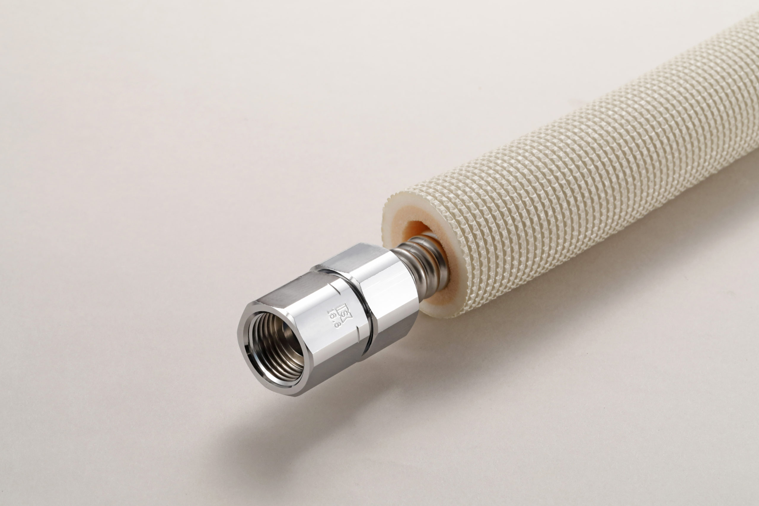 高耐候性/高耐熱性 保温材を使用した被覆付巻フレキです。屋内へ引き込んだあとも、結露防止対策になります。